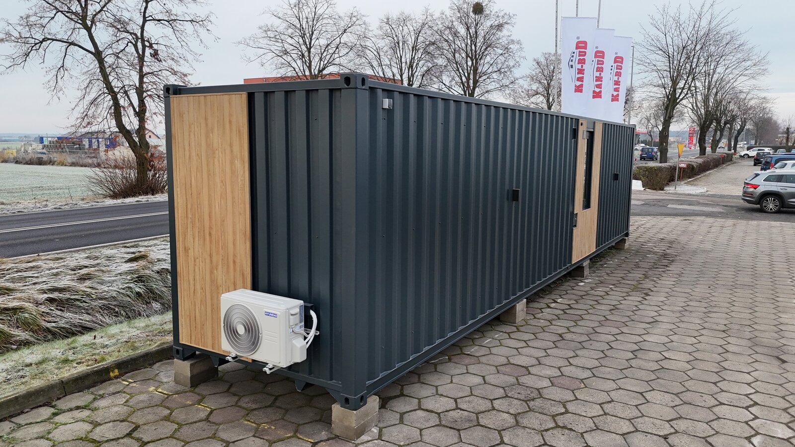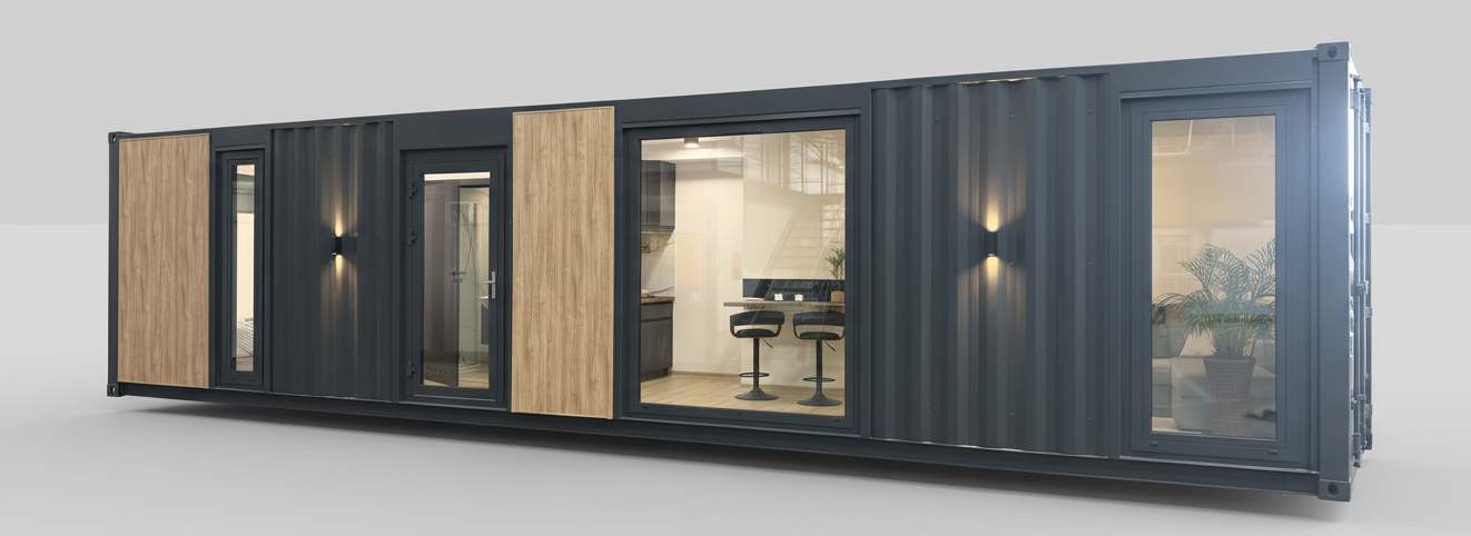 External dimensions: 12,192 × 2,438 mm (standard 40 ft HC shipping container)