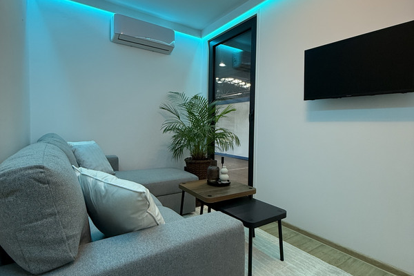 Economical & modern heating: air conditioning with heat pump function + infrared panel heaters.