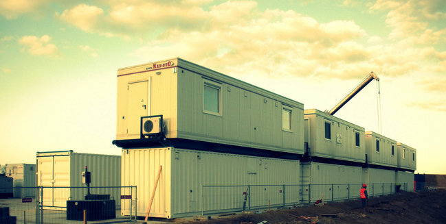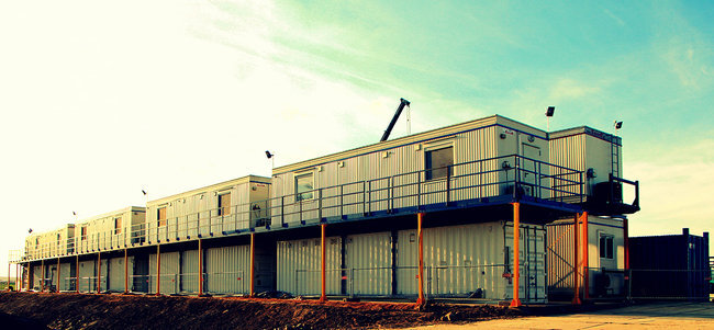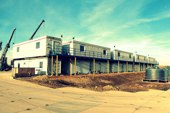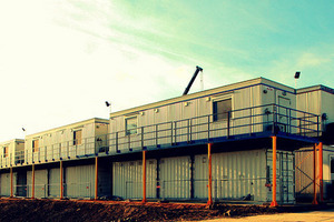 Our new two-storey relocatable facility for United Oilfield Services and Lane Energy is a technical mobile and self-sufficient fly camp meant to serve at shale gas and oil rigs. This project will be taking part in the annual Modular Building Institute competition in USA, 2014. UOS is an oilfield service company which has recently expanded to Europe and currently holds great potential in fracking and drilling on the continent. Meeting the current demand for state-of-the-art modular buildings in the industry expanding in Poland, it is a self-existing multi-functional and complete area, built of recycled 40 ft. converted first trip metal sea containers and wooden construction units. The total amount of 18 cabins, of which 11 are wooden VIP containers on metal skids and 7 Premium 40ft. converted sea containers. The facility with all media installations which serve a modern rig consists of fully-equipped air-conditioned accommodation units, a commercial laundry, drying and changing room, dining area, offices, sanitary and technical units.